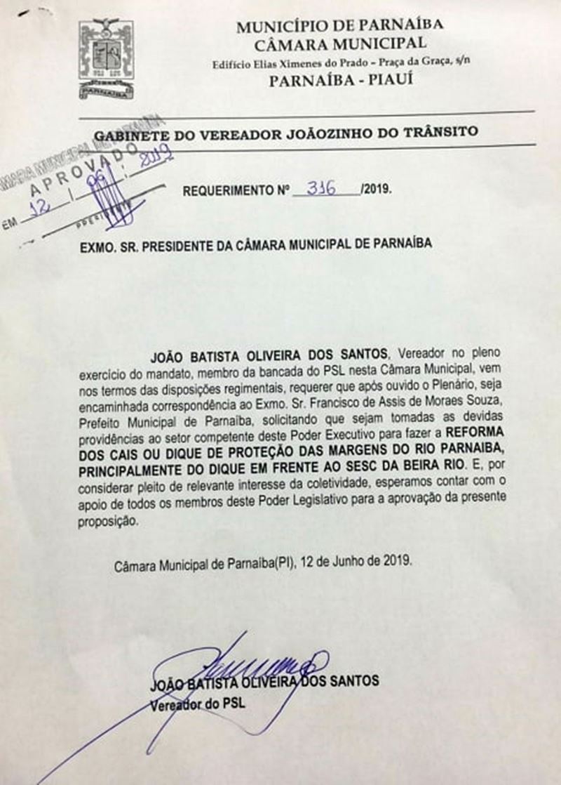 No 2º requerimento, o vereador solicitou em caráter de urgência a reforma da mureta de proteção do cais da beira-rio em frente ao Sesc.