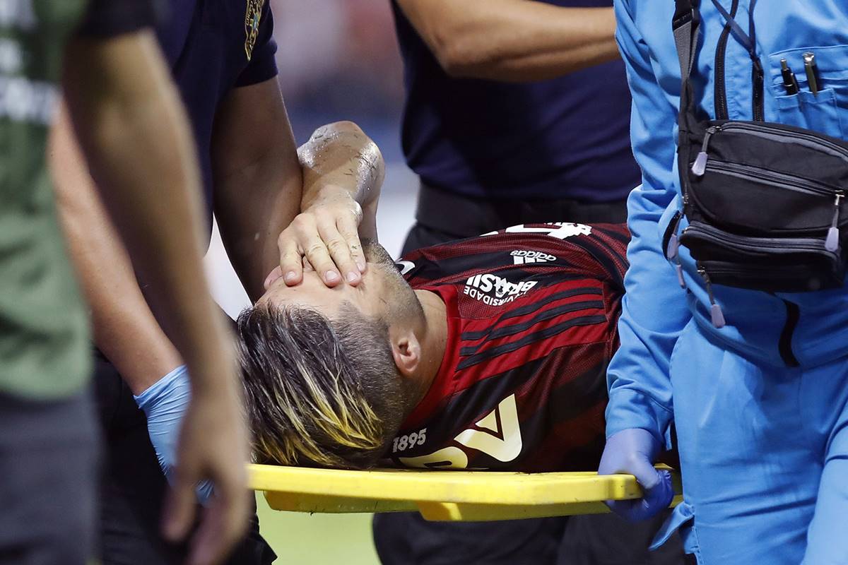 Diego sofreu uma entrada dura no segundo tempo da derrota por 2 a 0 para o Emelec, quarta-feira, pelo jogo de ida das quartas de final da Libertadores. Ele deixou o estádio direto para um hospital em Guayaquil, onde exames confirmaram a fratura.