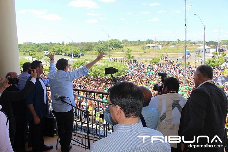 O Presidente da República, Jair Messias Bolsonaro, foi recepcionado na manhã desta quarta-feira (14), por milhares de apoiadores, que compareceram ao Aeroporto Internacional de Parnaíba para ouvir as palavras do “mito”, nome que recebeu ainda na campanha à presidência da república em 2018.