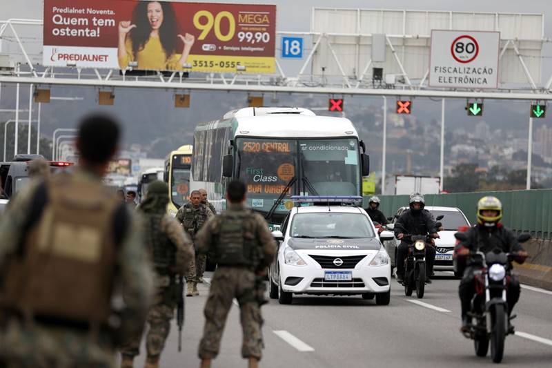 Policiais são vistos na ponte Rio-Niterói, onde forças de segurança neutralizaram sequestrador de ônibus