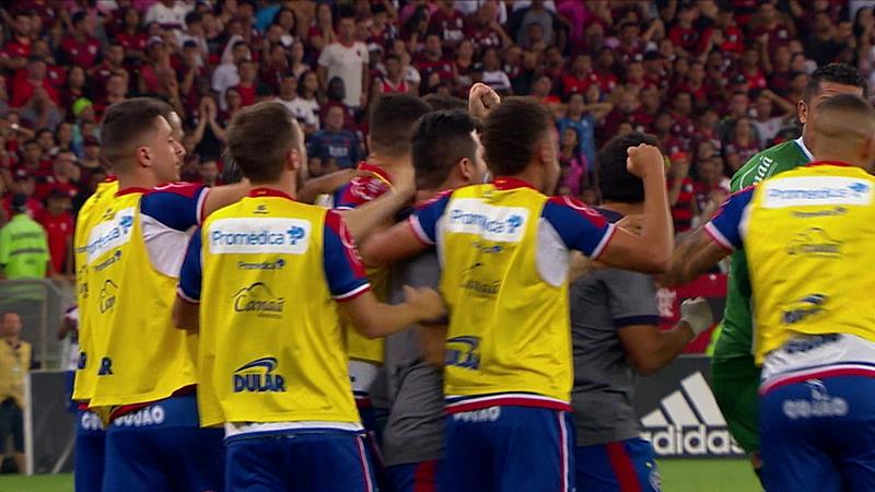 Ainda no primeiro tempo, o Fla teve chances para empatar com Gabriel e Gerson. A partir da etapa final, a pressão se intensificou, mas na mesma proporção, o Bahia levara perigo no contragolpe. Até que, aos nove minutos, a estratégia valeu a pena. E com dedo de João de Deus. Reinier, que entrou no intervalo, invadiu a área e, de cabeça, completou para as redes o cruzamento de Gabigol – para explodir os 65 mil torcedores no Maracanã.
