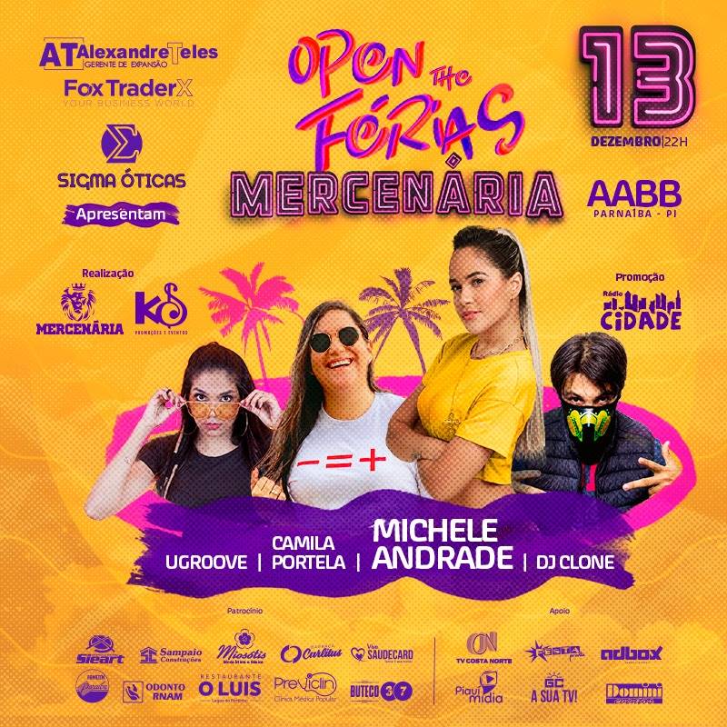 O evento que marcará a abertura das férias no litoral do Piauí terá como atração principal a cantora Michele Andrade, com participações de Camila Portela, Ugroove e DJ Clone.