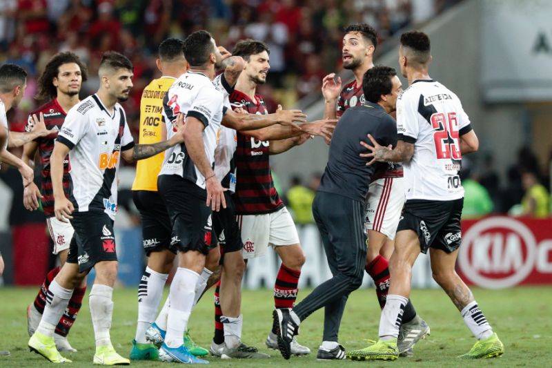 No fim da partida, flamenguistas e vascaínos quase chegaram às vias de fato. Pablo Marí e Ribamar se desentenderam e um empurra-empurra começou.