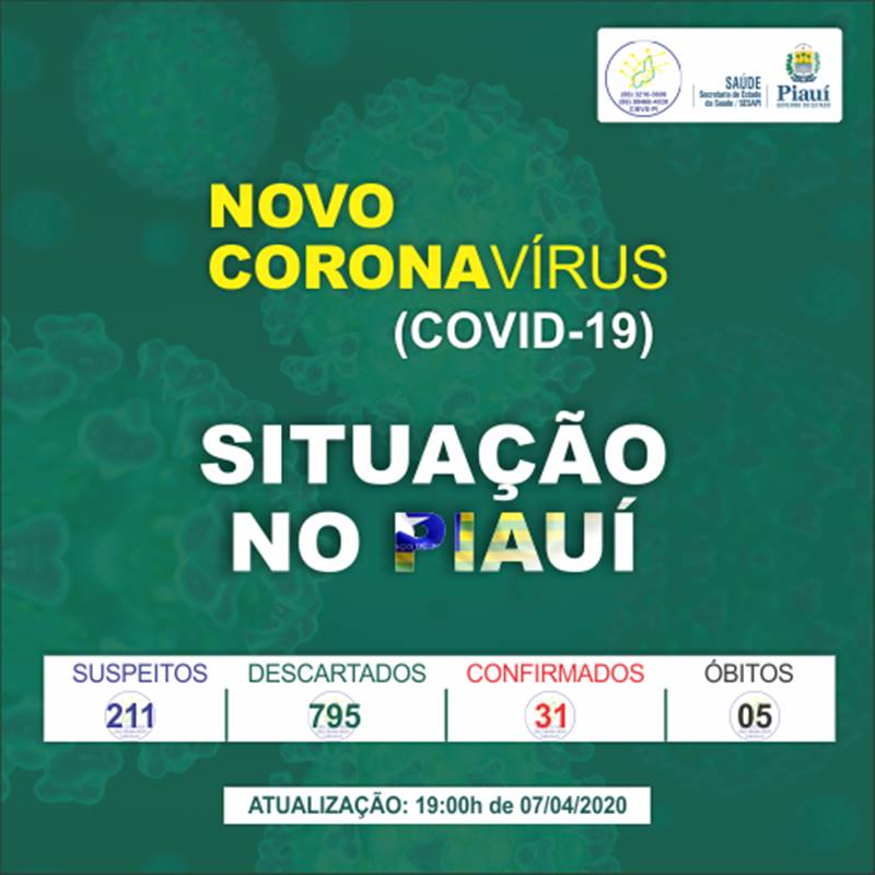 O balanço divulgado pela Secretaria de Estado da Saúde do Piauí (Sesapi), na noite desta terça-feira (7), trouxe o resultado de 126 exames: 121 foram descartados e 5 confirmados. Outros 211 casos seguem sendo investigados.