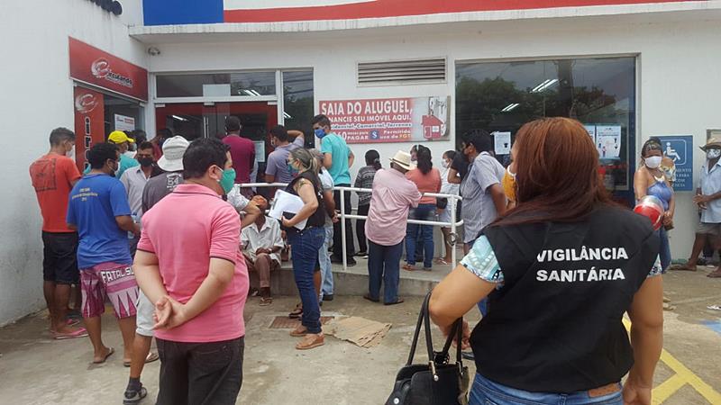 Ações da Vigilância Sanitária são de cunho educativo e preventivo, orientando gerentes de bancos e funcionários de lotéricas sobre as medidas de proteção contra o Coronavírus.
