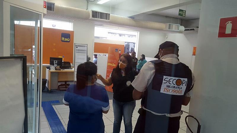 Por orientação do Prefeito de Parnaíba, Mão Santa, à Secretaria Municipal de Saúde, através da Vigilância Sanitária, o trabalho daquele órgão, que já vinha sendo feito de forma ostensiva desde o início da quarentena de Covid-19 na cidade, foi intensificado ainda mais em agências bancárias e lotéricas, a fim de garantir que as instituições financeiras e estabelecimentos comerciais adotem as medidas de segurança recomendadas pelo ministério da Saúde, com proteção a clientes e pessoas que circulam diariamente por esses locais.