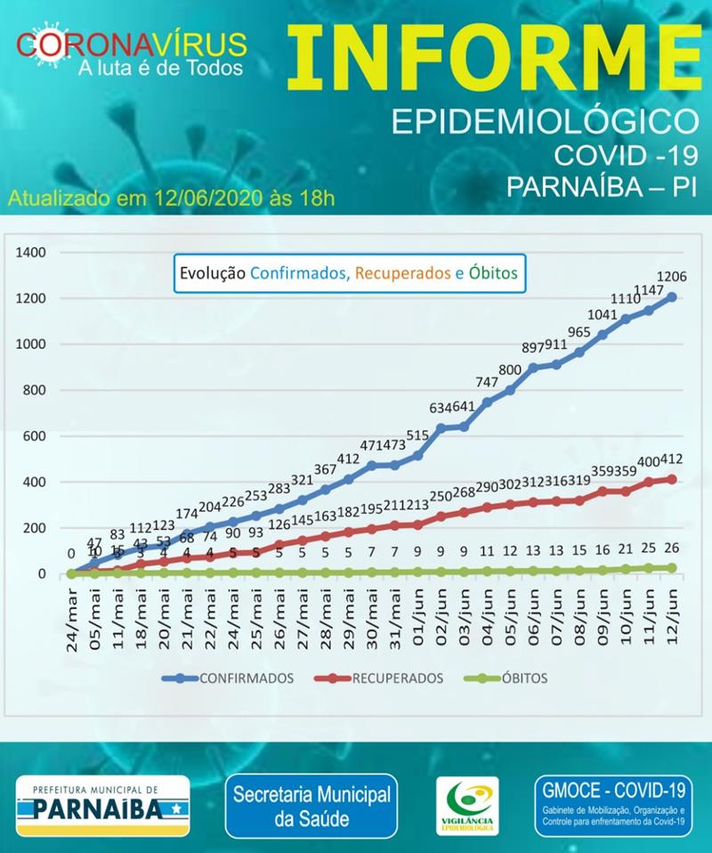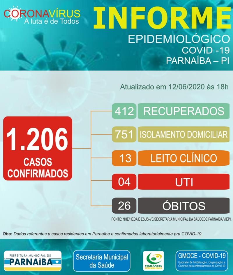 Confira o Informe epidemiológico da Prefeitura de Parnaíba desta sexta-feira, 12 de junho de 2020.