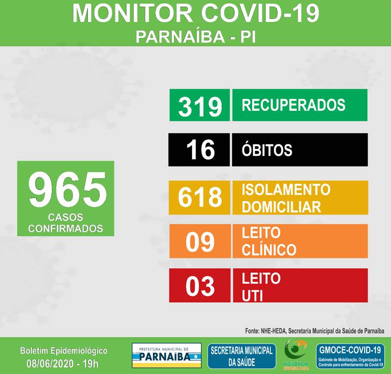 Confira o Monitor COVID-19, desta segunda-feira, 08 de junho de 2020.