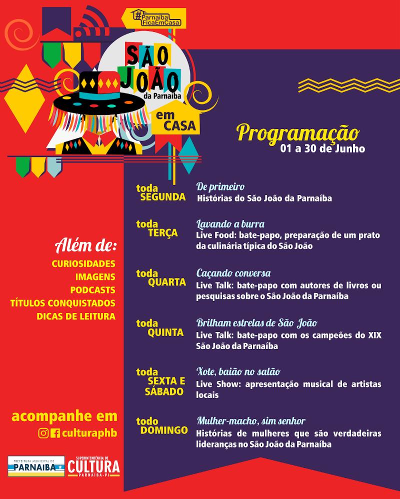 Em decorrência do cancelamento do XX São João da Parnaíba em seu formato tradicional, este ano o São João da Parnaíba terá toda uma programação on line.