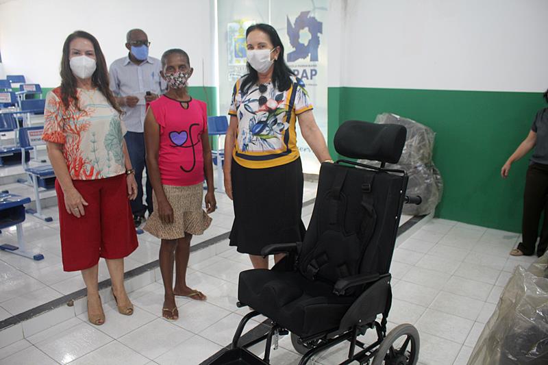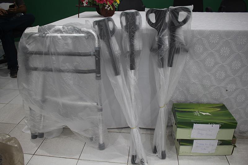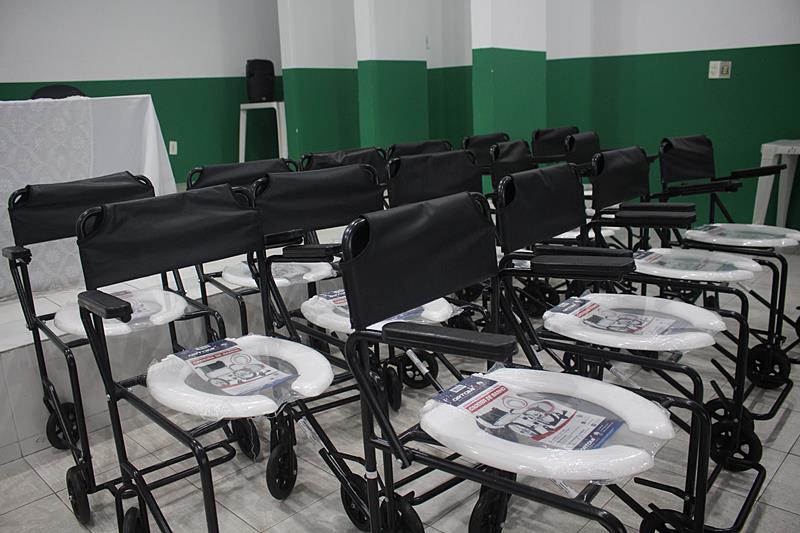 No total foram entregues 22 cadeiras de rodas, 16 cadeiras de banho, 2 pares de muletas do tipo canadense, 01 andador e 02 pares de botas do programa “pé diabético”.