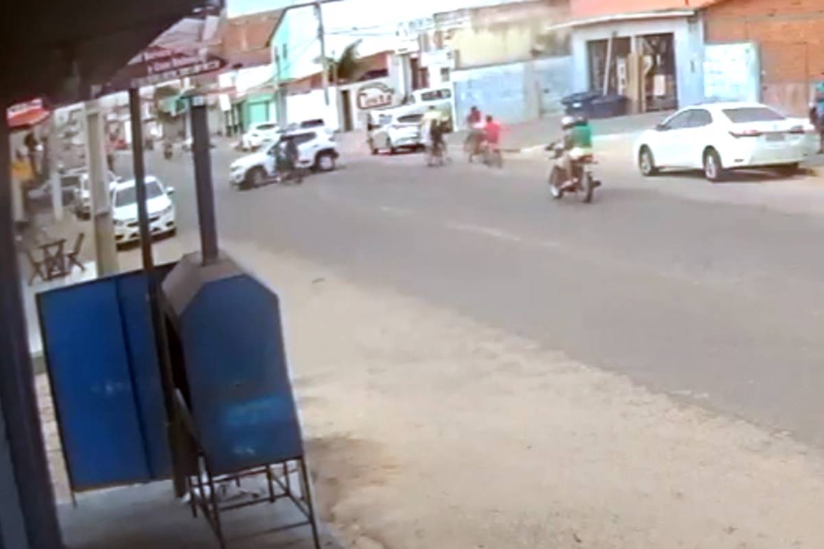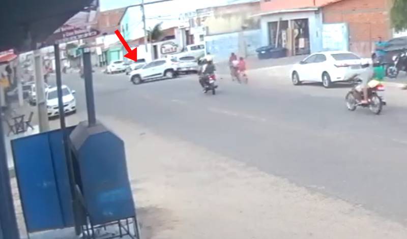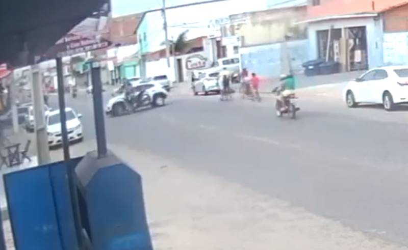 Uma câmera de segurança registrou o momento em que uma motocicleta choca-se violentamente contra um veículo na Avenida João Silva Filho, Bairro Piauí. Continua depois da publicidade