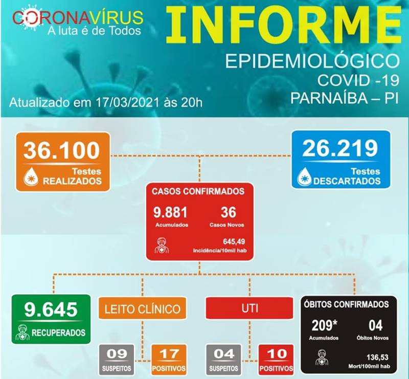 Entre as vítimas da COVID-19 em Parnaíba, um jovem de apenas 33 anos, o que reforça a agressividade desta suposta nova cepa do vírus. Foram registrados 36 novos casos em Parnaíba nesta quarta.