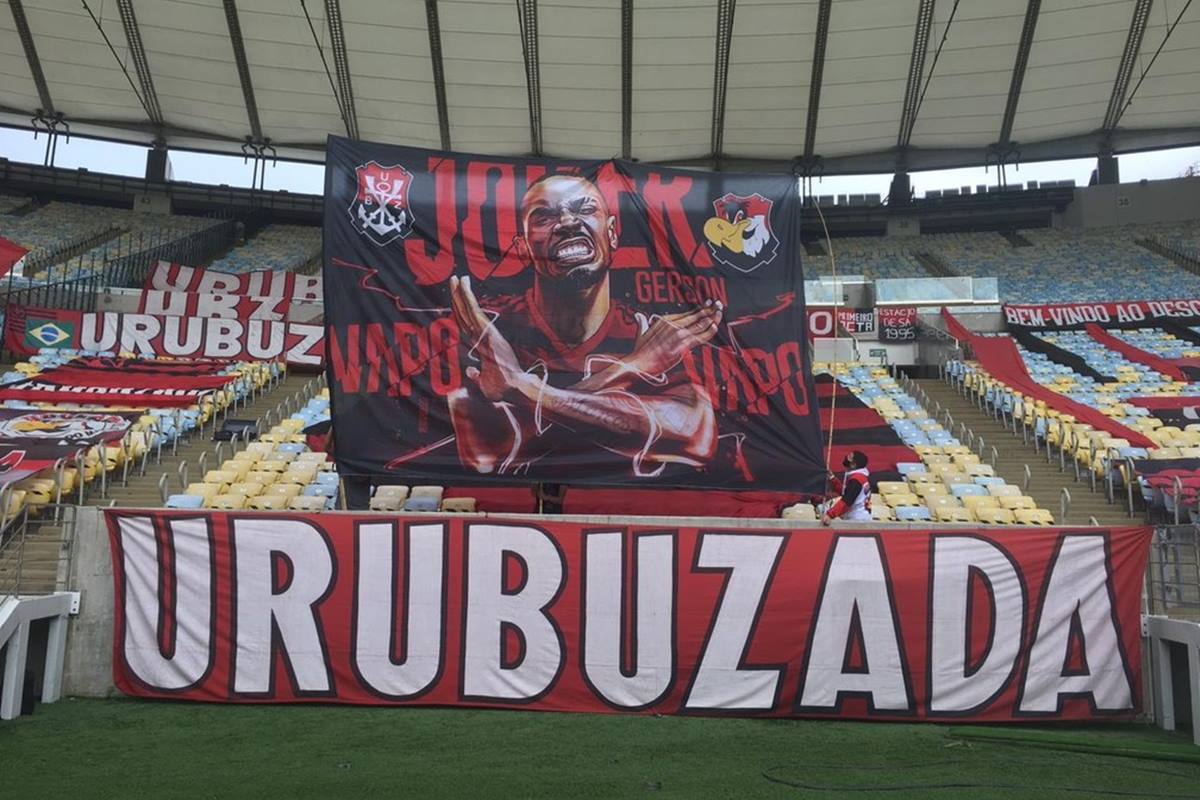A iniciativa foi da torcida organizada Urubuzada, que incluiu no bandeirão referências à passagem de Gerson pelo Flamengo, como o apelido de “Joker” e o tradicional gesto de “Vapo”.