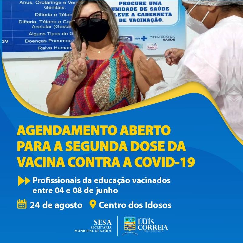 A Prefeitura de Luís Correia informa que está aberto o agendamento para a aplicação da segunda dose da vacina contra a covid-19 para os servidores da Educação. Continua depois da publicidade