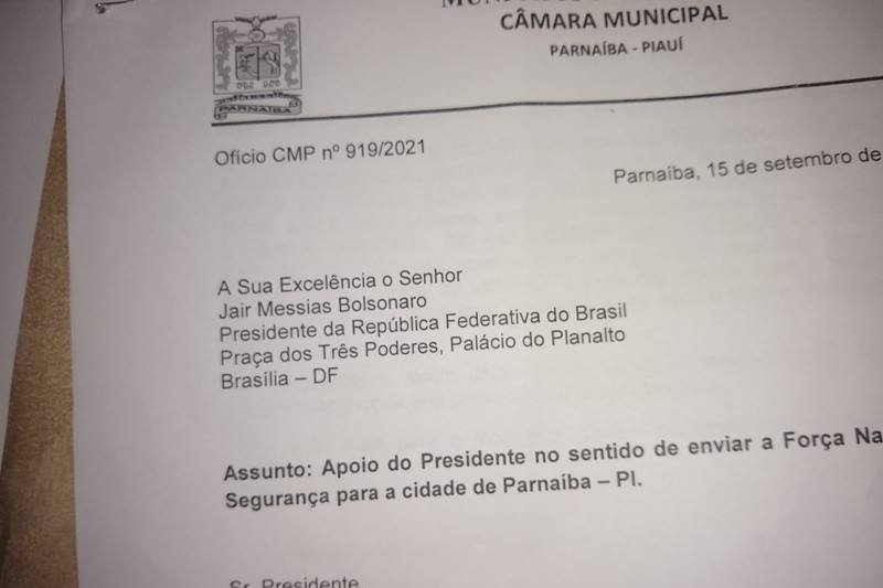 O prefeito Mão Santa e, o presidente da Câmara Municipal de Parnaíba, vereador Carlson Pessoa, encaminharam nesta quinta-feira (16), ofícios ao presidente Jair Bolsonaro, e ao ministro da justiça, Anderson Gustavo Torres, solicitando o envio de tropas da Força Nacional de Segurança, para atuar em Parnaíba. Continua depois da publicidade