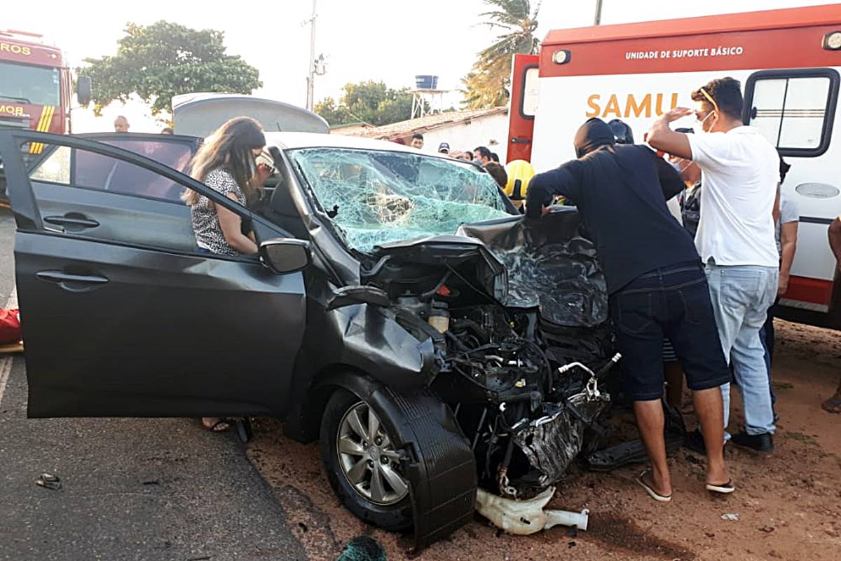 Atualizado às 22h17min: As vítimas do acidente foram identificadas como: José Geovane Gomes Filho (vítima fatal), Lina Carla de Oliveira Pereira (esposa de Geovane), Ilza de Oliveira Pereira, (mãe de Lina e sogra de Geovane) e o médico Renato de Oliveira Pereira, (irmão de Lina), todos estavam no veículo HB20S e encaminhados ao Hospital Estadual Dirceu Arcoverde em estado grave.