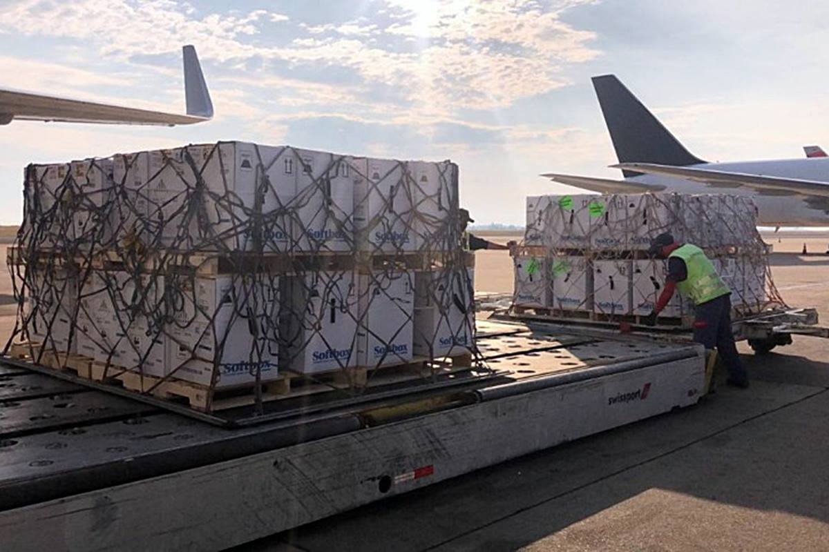 A previsão da empresa era que três voos chegassem ao país entre 5h35 e 7h30 deste domingo. O quarto e último carregamento, com pouco mais de 1,1 milhão de doses, está previsto para pousar no país no meio da tarde.