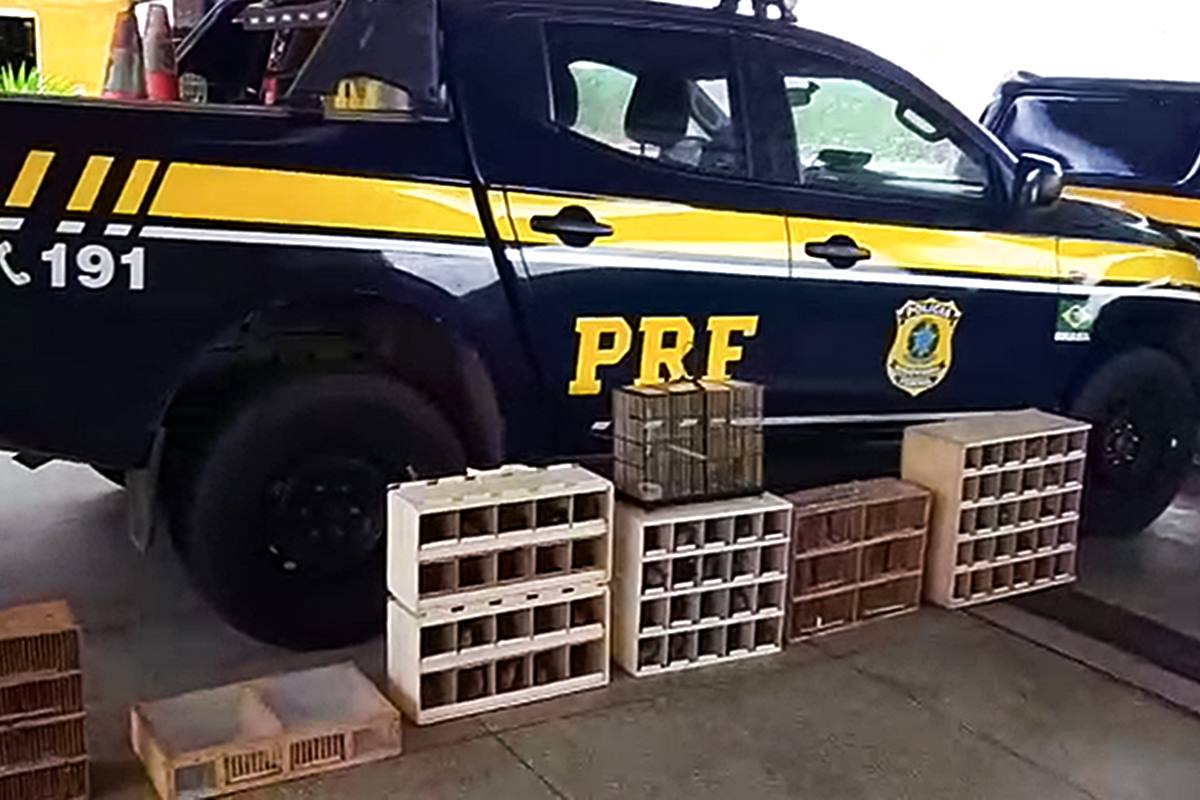 Cerca de 156 pássaros de diversas espécies eram transportados acondicionados em pequenas gaiolas no banco traseiro de um veículo de passeio. Os pássaros vinham do Pará com destino ao Ceará.