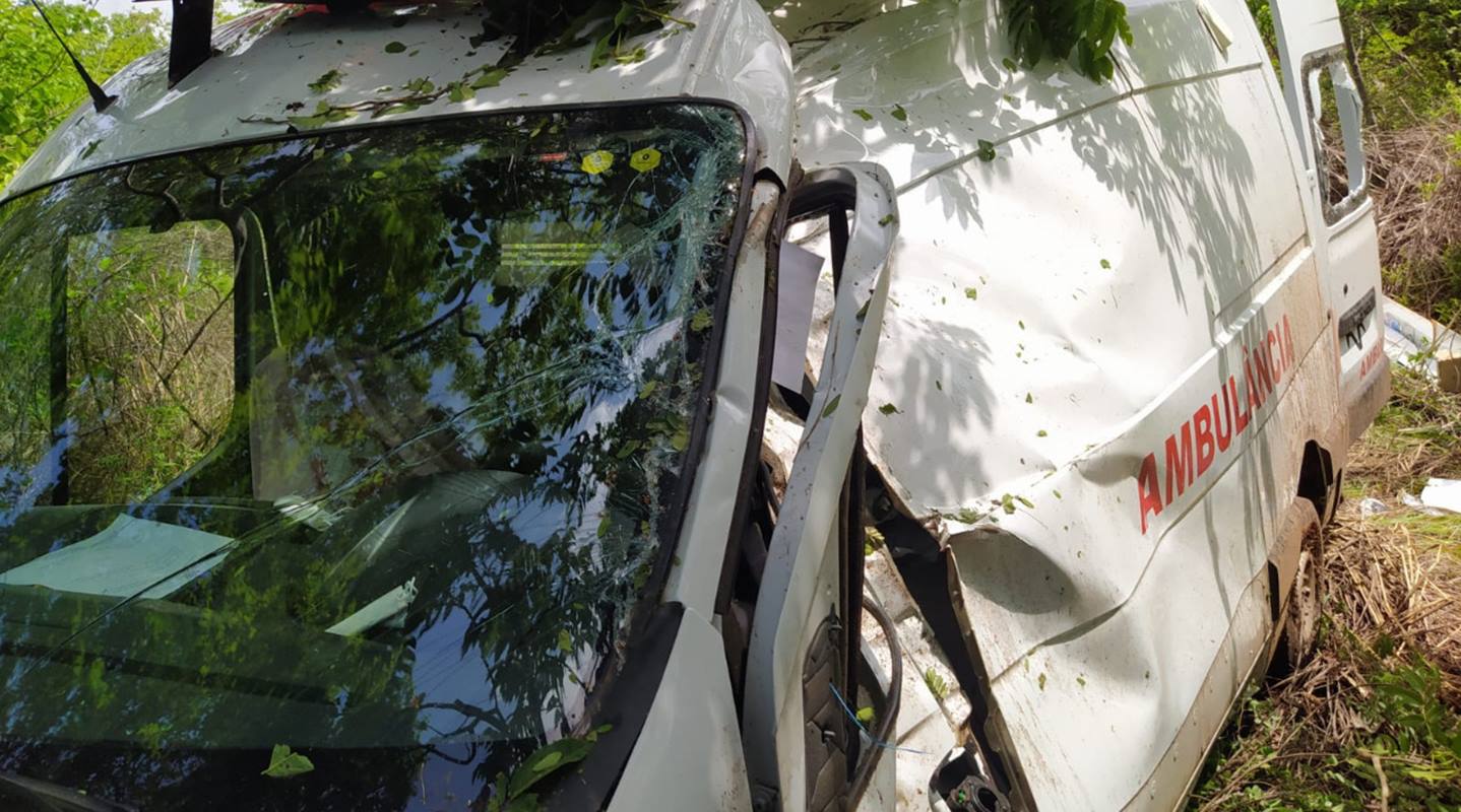 O condutor de uma ambulância, que transportava três ocupantes: um paciente, um acompanhante e uma técnica de enfermagem, morreu após perder o controle do veículo, sair da pista e na sequência colidir contra uma árvore.
