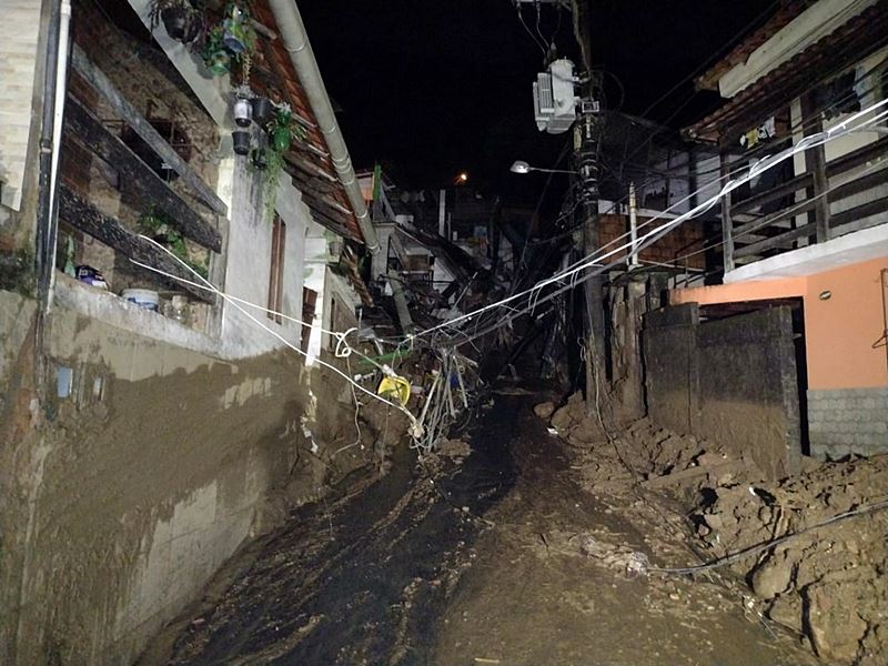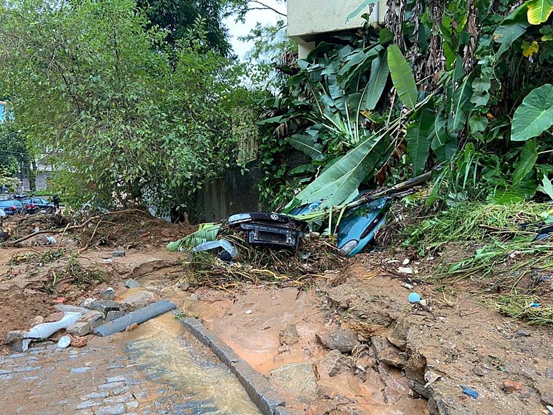 Morros vieram abaixo, carregando pedras do tamanho de carros; veículos ficaram empilhados com a força da correnteza; vias importantes foram bloqueadas, dificultando o acesso aos desabrigados.