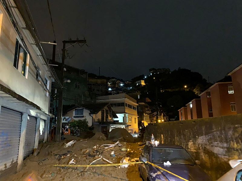 A busca por sobreviventes em meio ao soterramento no Morro da Oficina seguiu intensa ao longo da madrugada e contou com a ajuda de moradores e equipes dos Bombeiros, Exército e Defesa Civil.