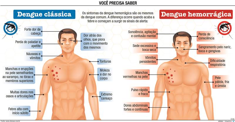 A transmissão da dengue acontece através da picada da fêmea do mosquito Aedes Aegypti, que provoca sintomas como dor nas articulações, no corpo, na cabeça, náuseas, febre acima de 39ºC e manchas vermelhas no corpo.