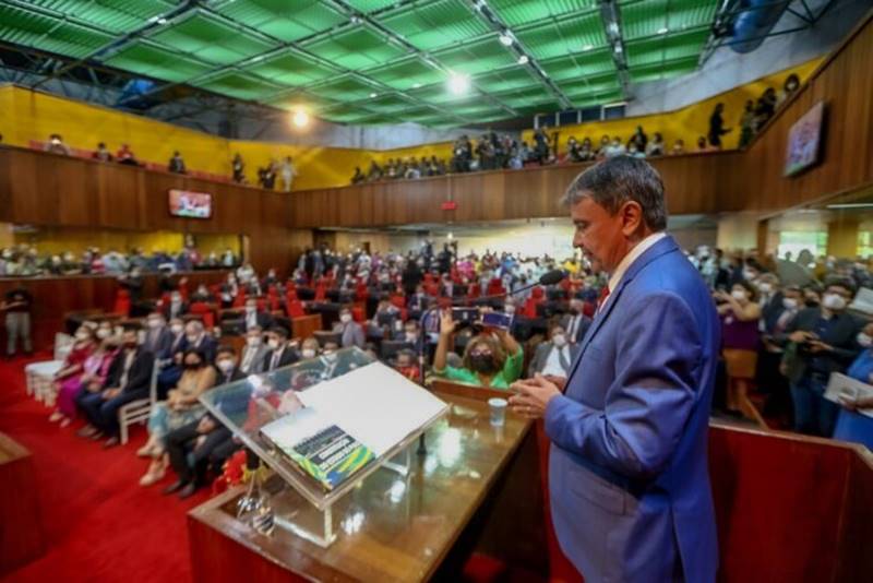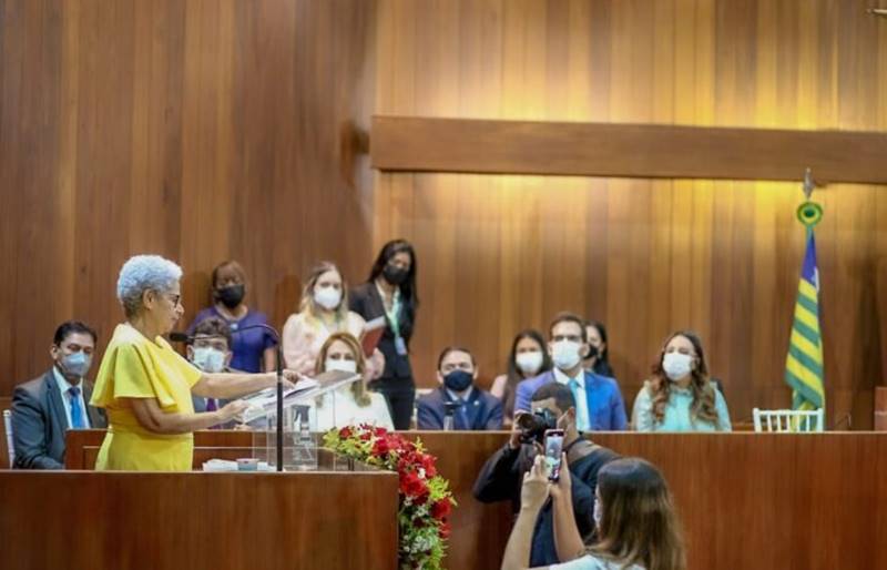 Em sessão solene realizada, nesta quinta-feira (31), na Assembleia Legislativa do Piauí (Alepi), Regina Sousa tomou posse como governadora do Piauí. Wellington Dias deixa o cargo para disputar uma vaga nas eleições 2022 e Regina Sousa passa a comandar o Estado por nove meses. Continua depois da publicidade
