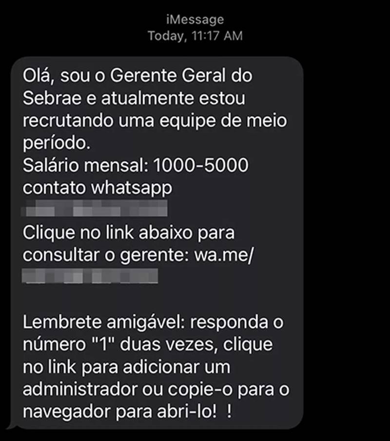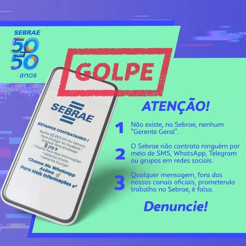 O Sebrae comunicou que não contrata ninguém por meio de SMS, WhatsAPP, Telegram ou grupos em redes sociais. “Qualquer mensagem fora dos nossos canais oficiais prometendo trabalho no Sebrae é falsa”, afirmou a entidade.