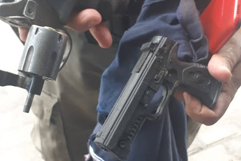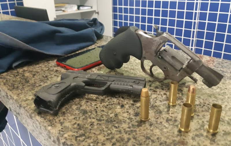 Na fuga um dos suspeitos deixou cair um revólver calibre 38, com 05 munições, sendo 03 deflagradas e duas intactas. No local os militares ainda apreenderam um simulacro de pistola, um aparelho celular e uma camisa.