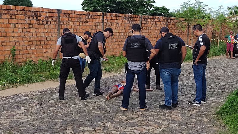 Equipes das polícias Civil e Militar, estiveram no local realizando os primeiros levantamentos e colhendo matérias como estojos de projéteis que ficaram espalhados pelo chão. O homem assassinado apresentava diversas tatuagens de peixe carpa, comumente associada a uma facção criminosa.