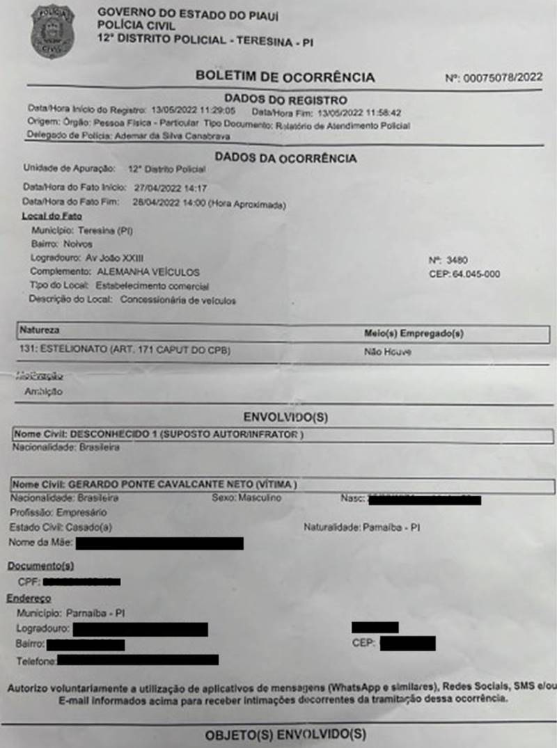 A farsa foi descoberta através de uma ligação do gerente de uma concessionária em Parnaíba, perguntando se a esposa da vítima estaria realizando a compra de um novo veículo.