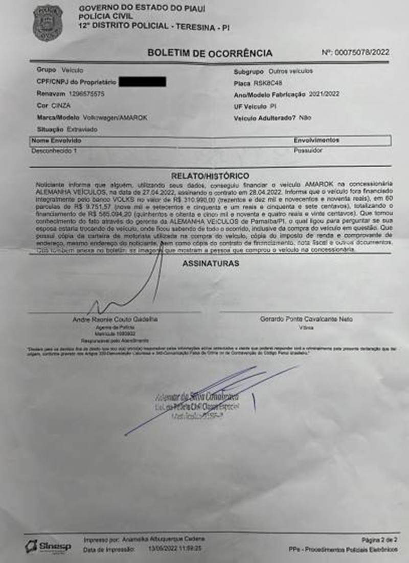 A compra seria de uma VW T-Cross, avaliada em R$ 180.000,00. No entanto, a polícia Civil já monitorava a transação e identificou a chegada de Kelsilene, às 03h20min no aeroporto de Teresina, de onde seguiu para Timon (MA) e ficou hospedada até o momento de seguir para a concessionária em Teresina, finalizar a compra.