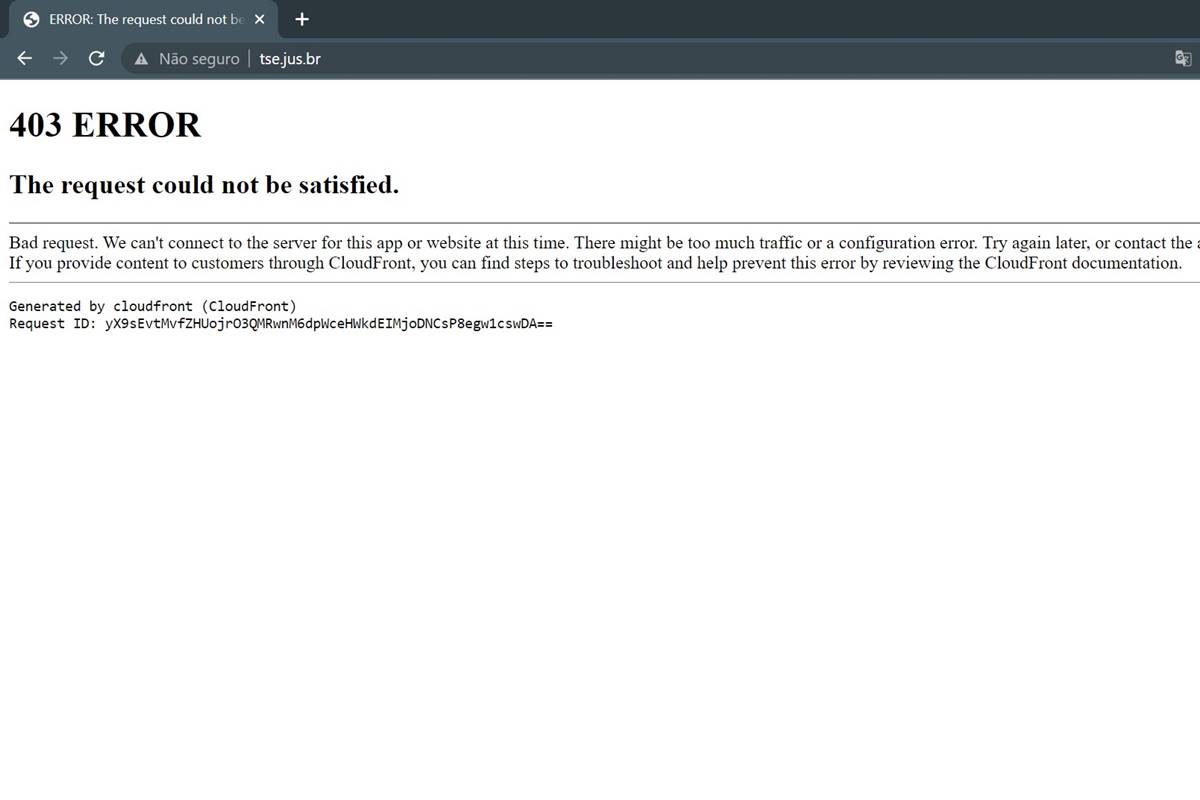 Em um teste feito pelo site TecMundo, o site do TSE apresentou um erro 403 ao tentar ser acessado. “Não podemos nos conectar ao servidor deste aplicativo ou site no momento. Pode haver muito tráfego ou um erro de configuração. Tente novamente mais tarde ou entre em contato com o proprietário do aplicativo ou site”, diz a mensagem de erro da página.