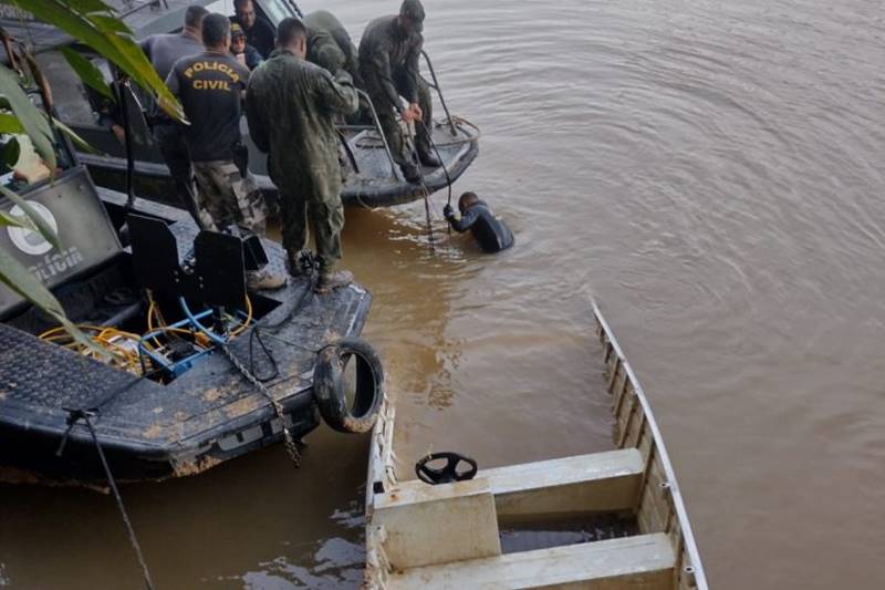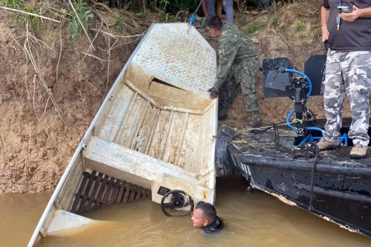 A embarcação estava a cerca de 20 metros de profundidade no rio Itaquaí, onde os dois foram assassinados no último dia 5. O local foi apontado pelo terceiro suspeito preso por envolvimento no crime. Contiua depois da publicidade
