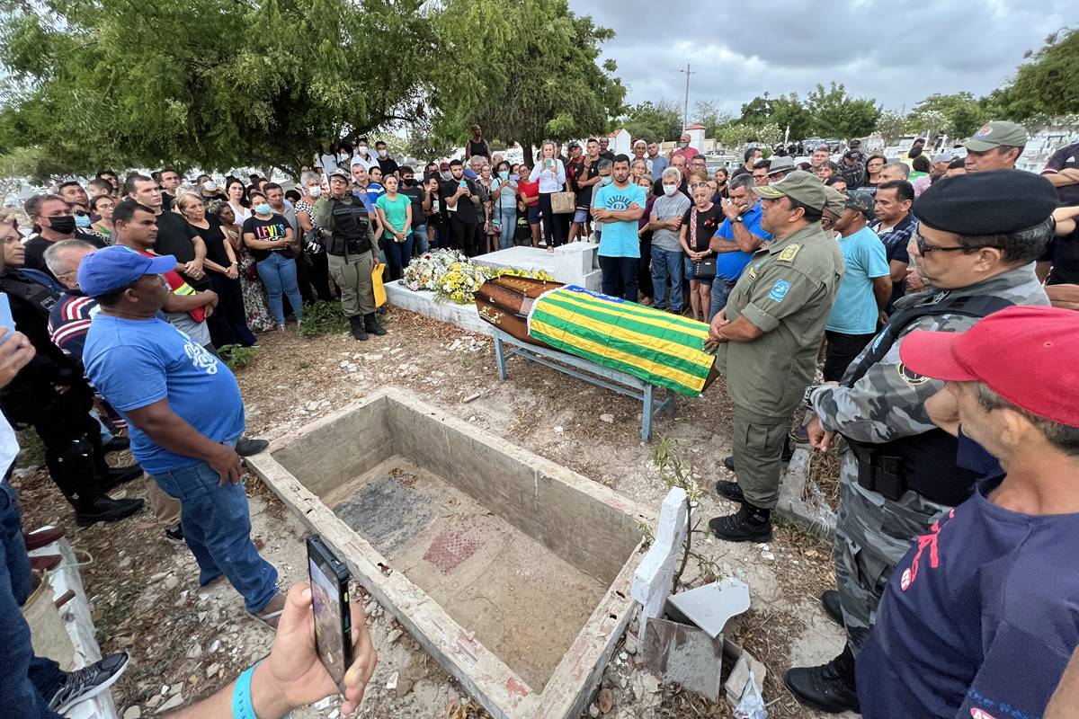 Com honras militares, o caixão do militar foi enterrado no cemitério Santana, no bairro Piauí. Na chegada do cortejo, uma salva de tiros foi disparada em honra ao Capitão da PM.