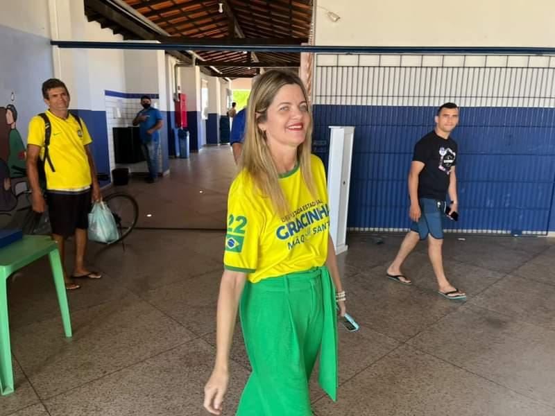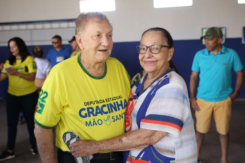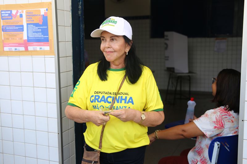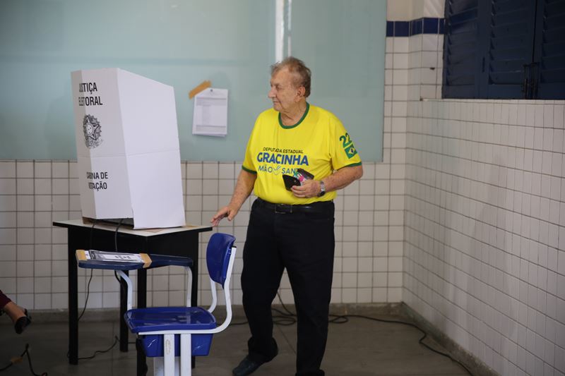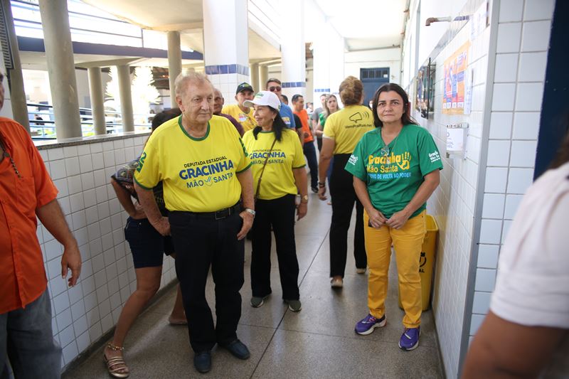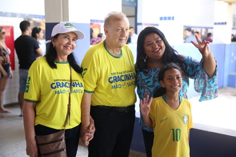 A também candidata a deputada estadual, Gracinha Mão Santa, chegou próximo às 13h. Acompanhada do marido Márcio Nunes e da filha mais nova Beatriz, Gracinha cumprimentou eleitores e também registrou seu voto, na mesma sessão onde seu pai, minutos antes comparecera.