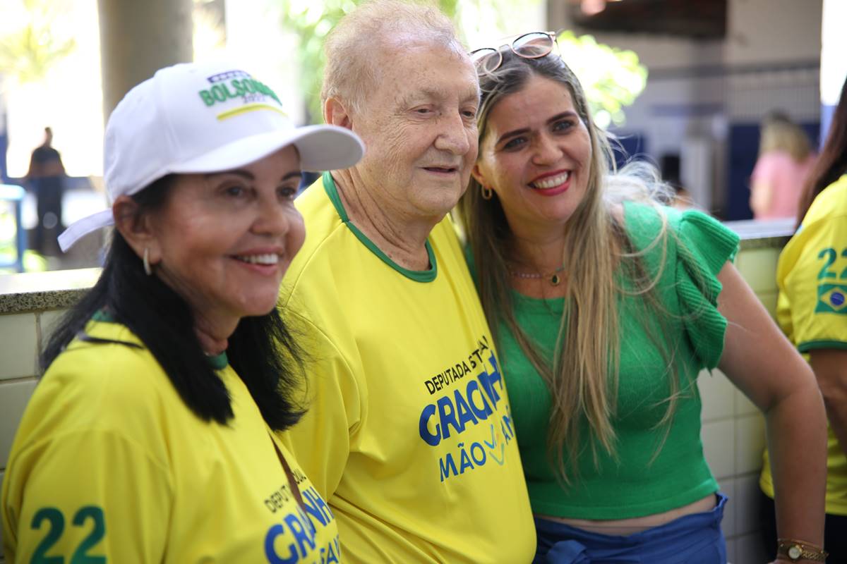 A também candidata a deputada estadual, Gracinha Mão Santa, chegou próximo às 13h. Acompanhada do marido Márcio Nunes e da filha mais nova Beatriz, Gracinha cumprimentou eleitores e também registrou seu voto, na mesma sessão onde seu pai, minutos antes comparecera.