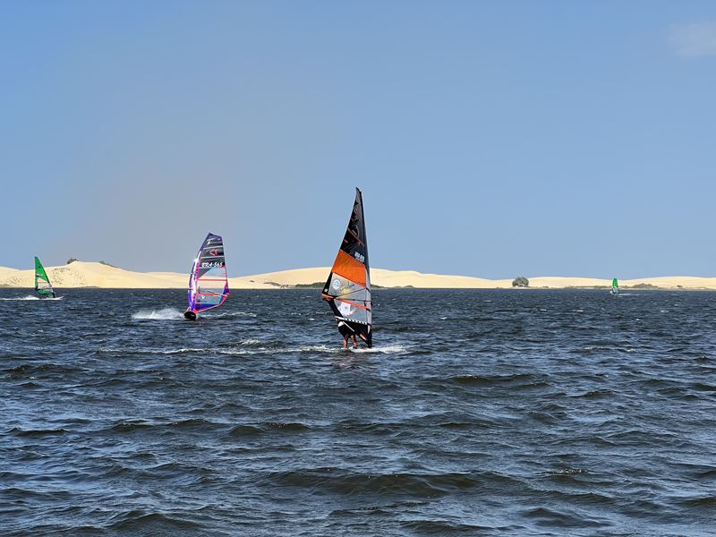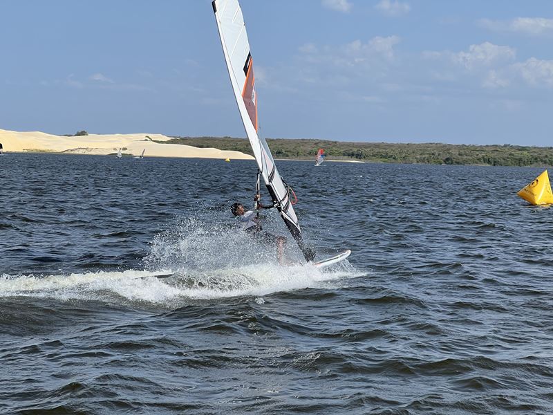 Já nesta quinta-feira (13) tem início a disputa da categoria slalom, que acontece em baterias com sete velejadores em cada uma delas. Vence quem chegar primeiro após percorrer o percurso demarcado por boias na Lagoa do Portinho.