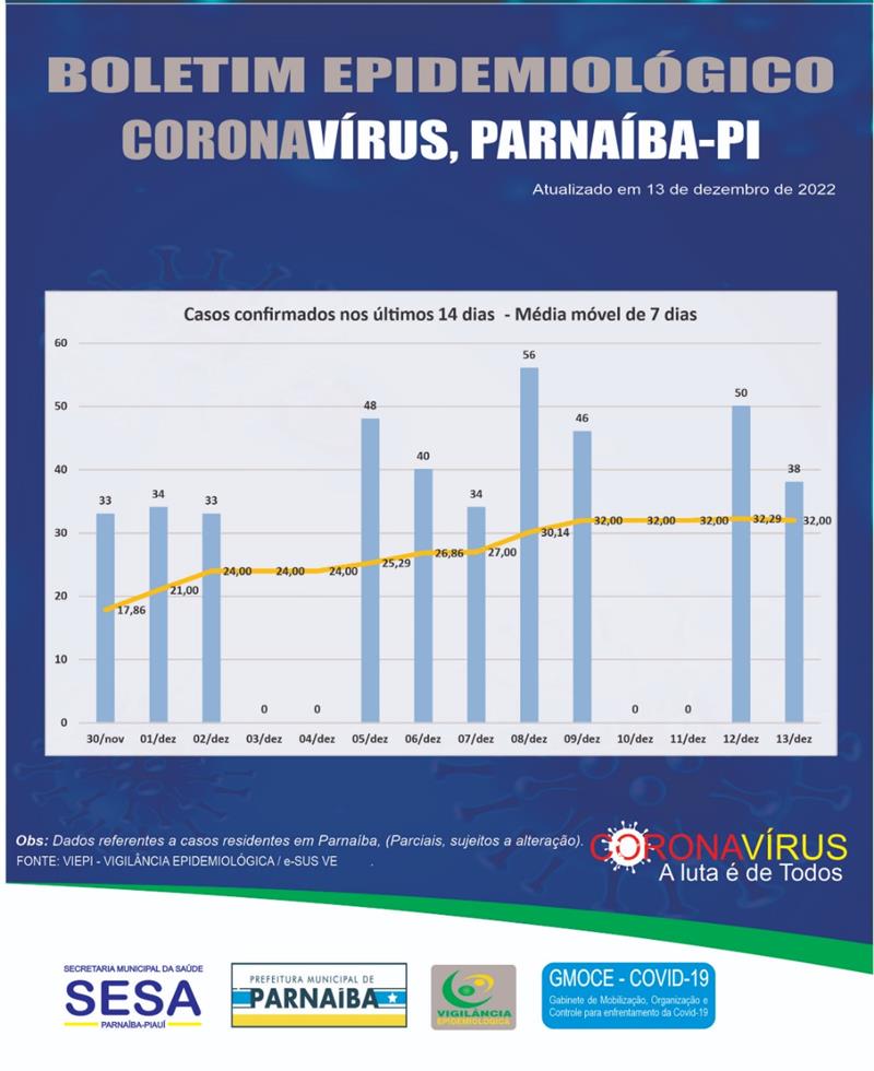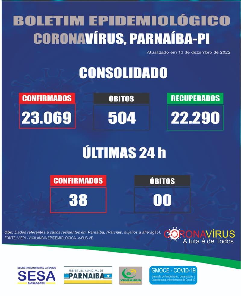 Somente nesta terça-feira (13), foram positivados mais 38 casos. Na última semana (05 a 09 de dezembro) o município registrou 02 mortes em decorrência de complicações da doença. Agora são 504 mortes desde o início da pandemia em 2020.