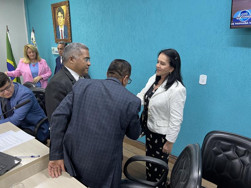 Sessão solene aconteceu na noite desta segunda-feira (06), no plenário da câmara de vereadores do município de Parnaíba. Deputada estadual Gracinha Mão Santa também esteve presente.