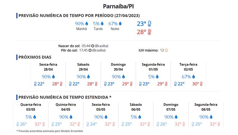 A previsão é de chuva para a região litorânea do Piauí durante o final de semana e a próxima semana INTEIRA.