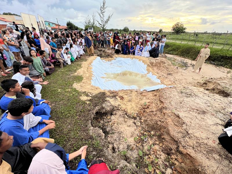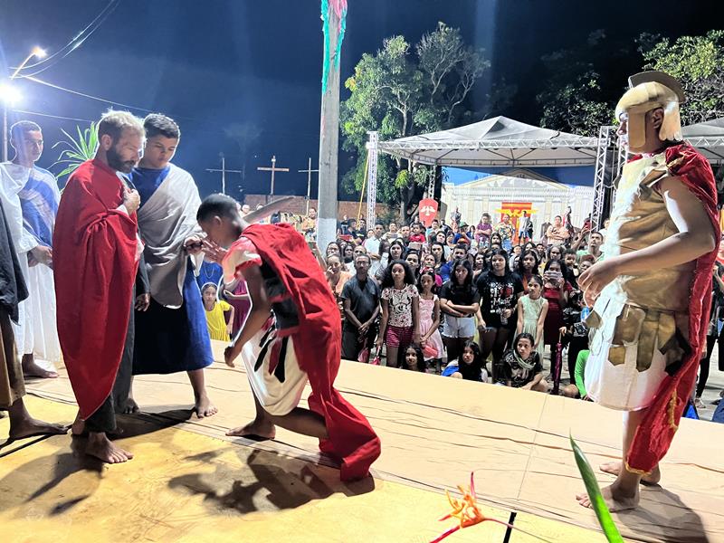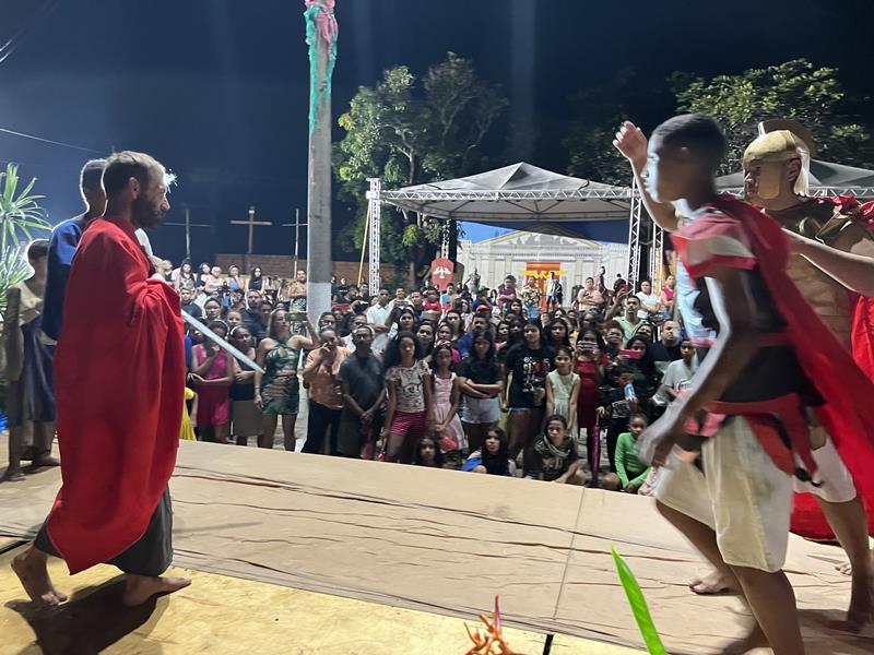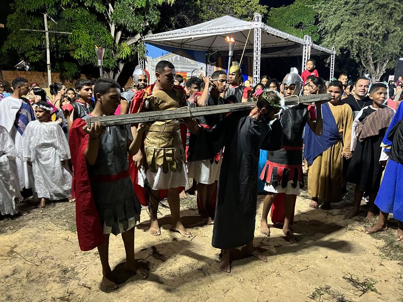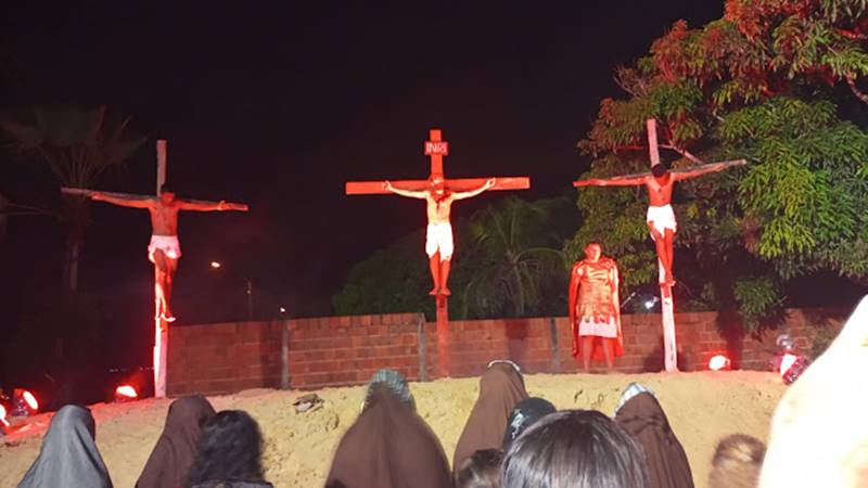 Durante a Semana Santa, há uma série de celebrações e rituais que ocorrem nas igrejas e comunidades, como procissões, missas e vigílias. E, um dos eventos mais aguardados pela população é a encenação da Paixão de Cristo (Via Sacra), que reconta a história de Jesus Cristo desde seu batismo até sua crucificação e morte. Continua depois da publicidade
