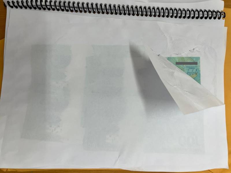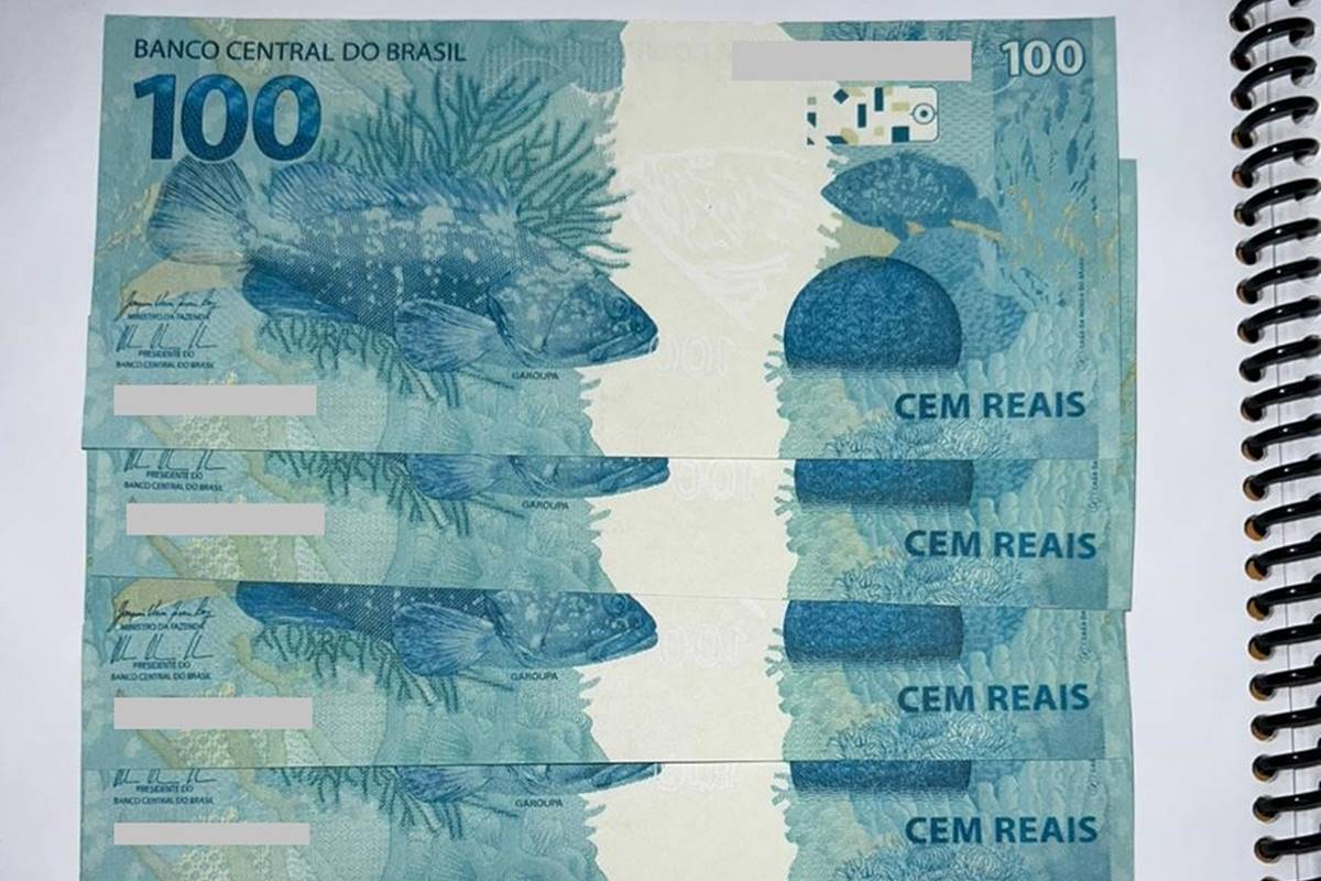 O suspeito recebeu via Correios, um pacote contendo cinco cédulas falsas de R$ 100,00, com número de série repetido, totalizando R$ 500,00