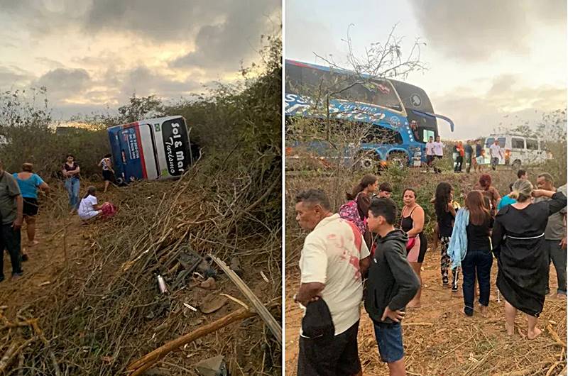 O ônibus que levava cerca de 50 romeiros de Teresina tombou na lateral de uma estrada estadual, segundo a Polícia Militar de Pernambuco.