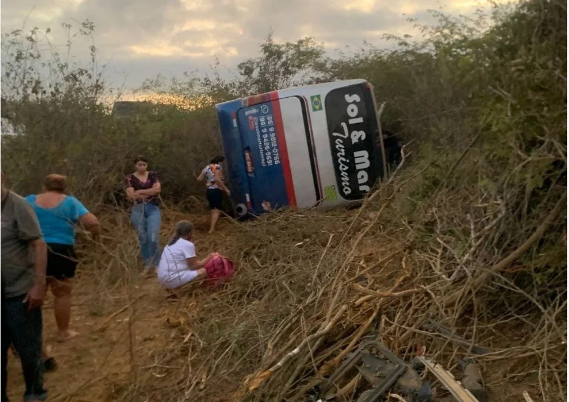 O ônibus que levava cerca de 50 romeiros de Teresina tombou na lateral de uma estrada estadual, segundo a Polícia Militar de Pernambuco.