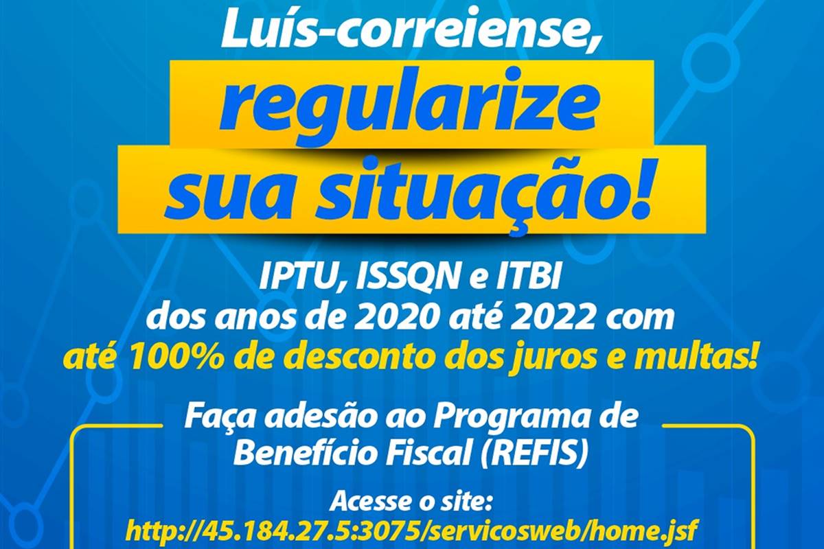 A prefeitura de Luís Correia instituiu nesta terça-feira (21) o Programa de Benefício Fiscal (REFIS) para regularizar débitos tributários de três dos principais impostos de natureza imobiliária do município. São eles: Imposto sobre a Propriedade Predial e Territorial Urbana (IPTU), de Imposto Sobre Serviço de Qualquer Natureza (ISSQN) e Imposto sobre Transmissão de Bens Imóveis (ITBI) referentes aos anos de 2020, 2021, 2022 E 2023. O contribuinte que aderir ao programa terá descontos de até 100% em juros e multas. Continua depois da publicidade