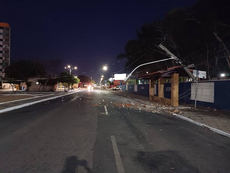 Com a violência do impacto o poste tombou e atingiu a parada de ônibus instalada em frente a Universidade Federal do Delta do Parnaíba.