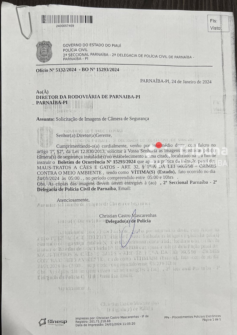 “São animais, com indícios de cirurgias… de acordo com as autoridades que convidamos a acompanhar o caso como polícia civil, OAB, ONGs, CCZ, dentre outras, se trata de um possível descarte de animais por uma clínica veterinária, nos quais eles estariam sendo cuidados” destacou Thiciano Ribeiro, diretor do terminal rodoviário de Parnaíba.