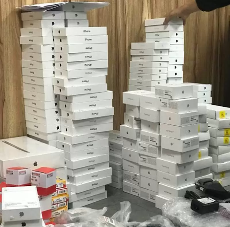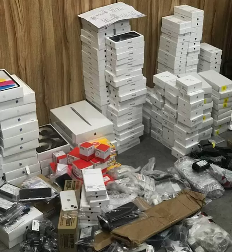 Também havia computadores, relógios, fones de ouvido, canetas, dezenas de telefones recondicionados de gerações anteriores e mais de 20 relógios de luxo.