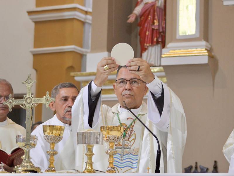 Dom Edivalter Andrade durante sua última celebração na catedral São Pedro de Alcântara como administrador da Diocese de Floriano, no dia 27 de janeiro. (Foto: Ryan Andrade)
